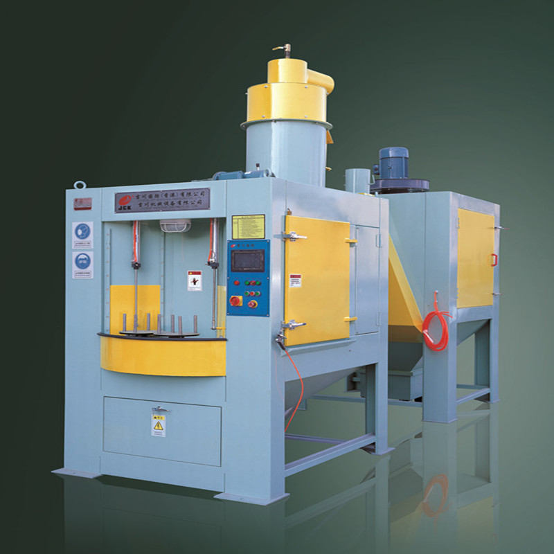 轉(zhuǎn)盤式自動(dòng)噴砂機(jī)又叫轉(zhuǎn)臺(tái)式自動(dòng)噴砂機(jī)、間隙式自動(dòng)噴砂機(jī)、連續(xù)式自動(dòng)噴砂機(jī)。他也是一款高產(chǎn)能、高效率的自動(dòng)噴砂機(jī)。噴砂大轉(zhuǎn)盤上上配置8個(gè)小轉(zhuǎn)盤,又分為4個(gè)區(qū)域,噴砂裝卸區(qū)、噴砂待加工區(qū)、噴砂加工區(qū)、吹凈室。