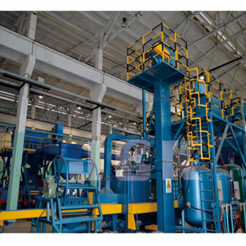 設(shè)備選用雙艙連續(xù)加壓式噴丸機作為噴丸系統(tǒng)的核心單元,